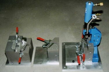 Modellbau Hermann Siegen entwickelt und fertigt für Ihre Vorserien Nietvorrichtungen. Die zusammenzufügenden Bauteile werden in mehreren Stufen auf einer Nietvorrichtung zentriert, mit Spannern fixiert und anschließend genietet. Die Zuführung der Bauteile kann manuel oder automatisiert erfolgen. Bitte stimmen Sie das für Ihre Zwecke optimale Nietvorrichtungs-Konzept mit uns ab.